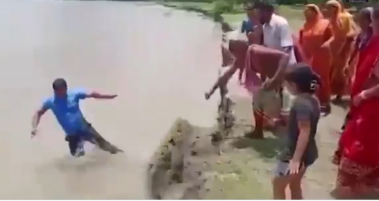 视频画面显示,一名记者面对镜头,正在介绍阿萨姆邦洪灾情况。他话还没说完就突然失去平衡掉进河。这名记者落入河中后反应迅速,奋力游向岸边,在多次尝试后终于被河边的众人救上岸。(海外网 张霓 实习生 王瑞萱)
