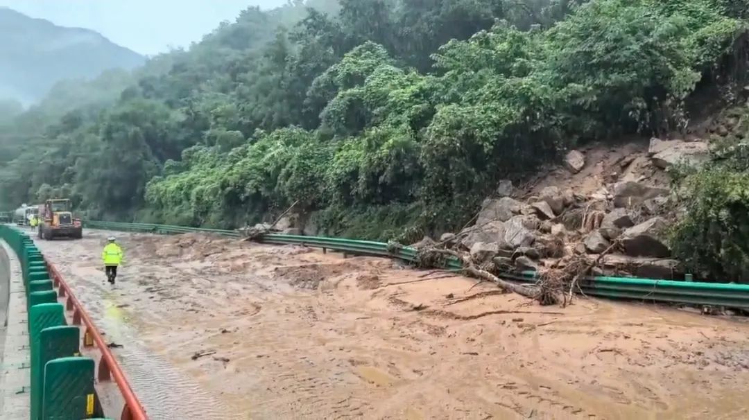 4、银昆高速宝汉段暴雨,天台山隧道群不具备通行条件,已关闭宝鸡南、岩湾、坪坎收费站;目前中岩山隧道口宝鸡方向交通中断;天台山服务区汉中方向已封闭。宝鸡南服务区和天台山服务区实行双向交通管制。