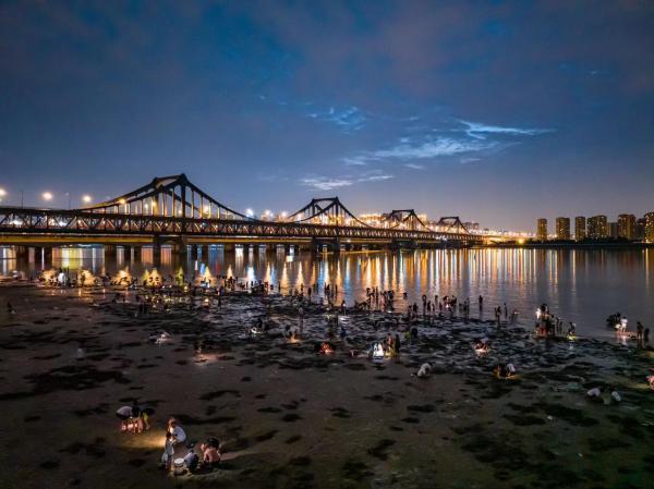 7月15日晚,朱先生拍下众多游客在钱塘江滩涂抓黄蚬。受访者供图