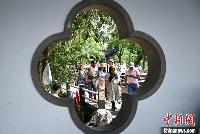 7月19日,金砖国家青年诗人等在西湖小瀛洲参观。中新社记者 王刚 摄