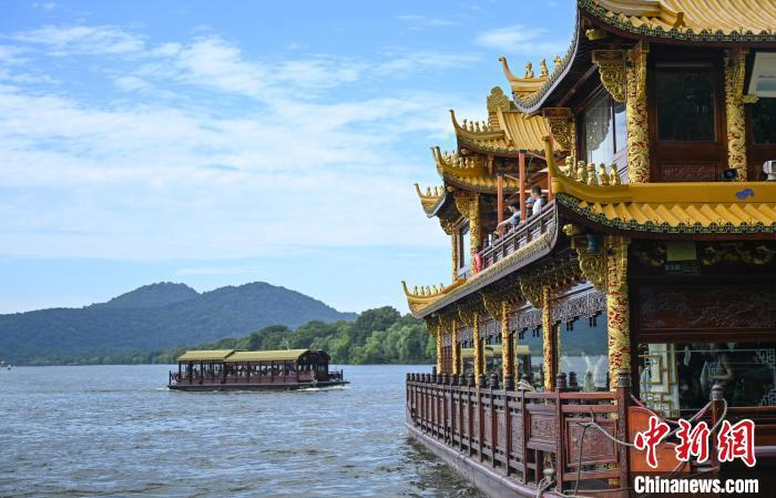 7月19日,青年诗人乘船游西湖。中新社记者 王刚 摄