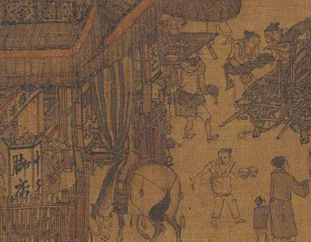 △清明上河图卷(局部),注意看右下角正在送外卖的小哥。