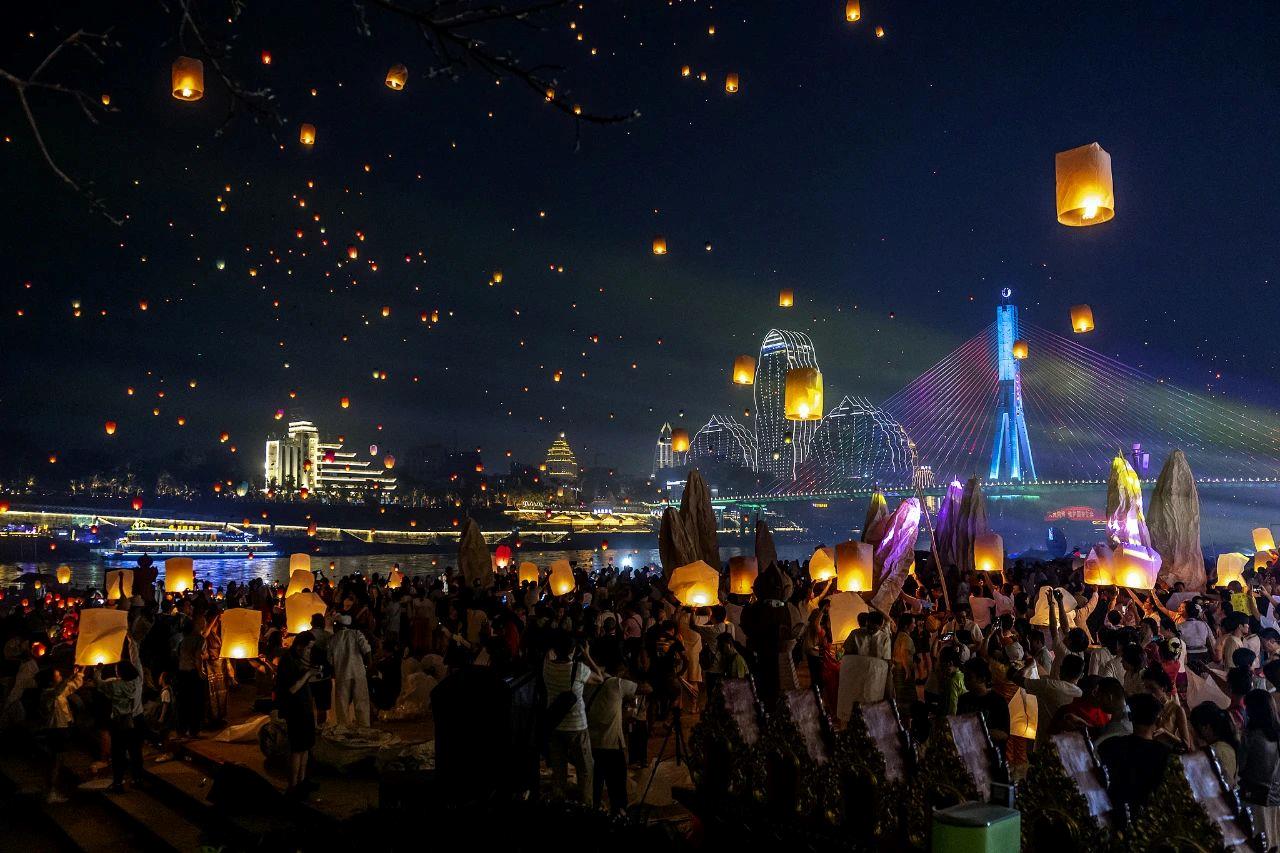 影片中,放灯节那天,莲花灯顺着水流漂向远方,孔明灯则在夜空徐徐升起,给自己和牵挂的人送去祝福和思念。
