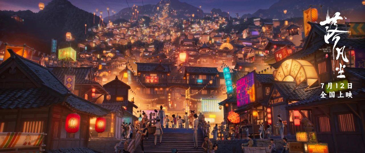 影片中,七古镇热闹非凡,熙熙攘攘的人群、灯火通明的夜市、热气腾腾的美食……重现了《清明上河图》中描绘的繁华喧嚣与烟火气息。