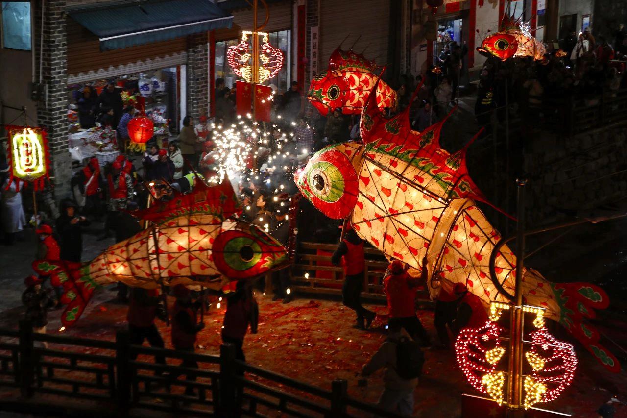 嬉鱼灯是徽州传统民俗,在当地已传承数百年。每年正月,当“鱼肚”中的灯光亮起,鱼灯队伍便开始走街串巷,将年年有余的祝愿传递给每一个人。
