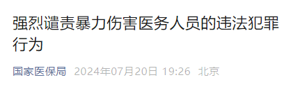 国家医疗保障局发文:强烈谴责暴力伤害医务人员的违法犯罪行为!