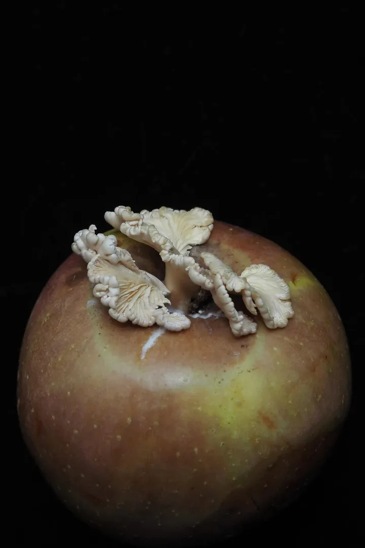 因家中苹果上长出白色蘑菇