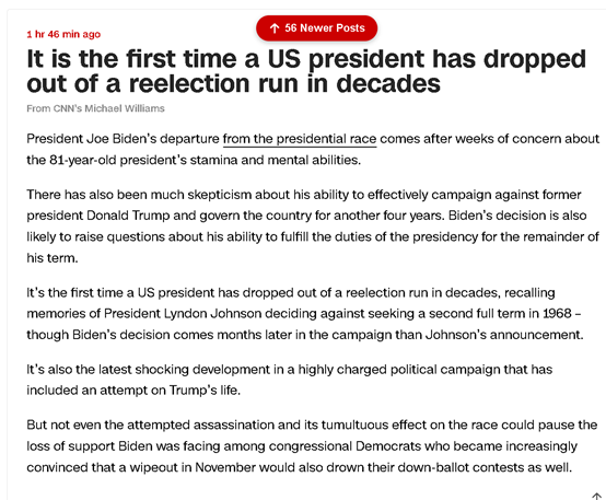 这里还有一个被美国媒体披露的细节,即拜登是自己先做出的这个决定,然后他再告诉的周围的人。这也是为何在他在社交媒体上宣布这个决定之前,不少他竞选团队的人也不知道他的想法,甚至仍然认为他会继续寻求连任。