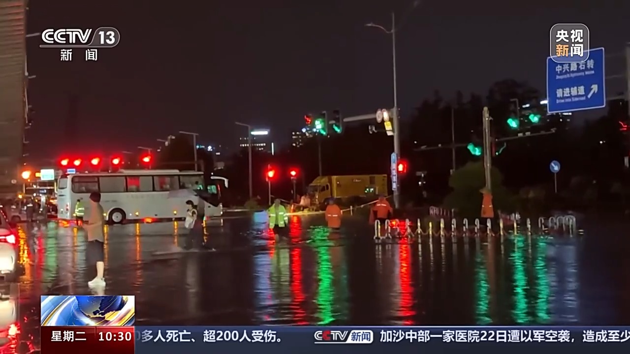 总台记者 张芷旖 :我现在正在河南郑州金水路和中兴路交叉口,这条街的积水长度超过300米,行车道上积水深度超过10厘米,左右两边人行道上的积水深度更高。从下午6时开始,郑州城区突降暴雨,两个小时郑州城区的平均降水量达到50毫米,部分地区降水量超过100毫米。短时强降水造成了郑州城区出现内涝。截至晚上10时,在郑州城区积水点位超过30厘米的有30个。