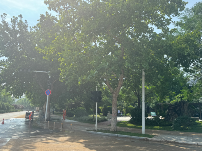 上述传言称事发地在郑州市经开第三大街与经南三路路口。7月23日9时,澎湃新闻在涉事地点看到,路口交通正常,不过,信号灯全部不亮。路口东南角,数名环卫工正在清理积水消退后道路上的淤泥。该位置有三根线杆,分别为路灯、车辆交通信号灯、行人交通信号灯。