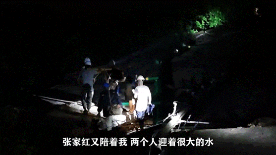 张家红冒着雨蹚着水