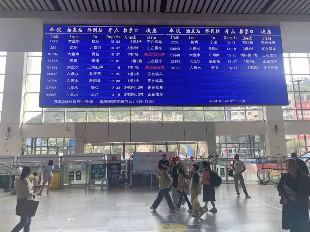 六盘水站车站大屏(7月24日9时5分 摄)
