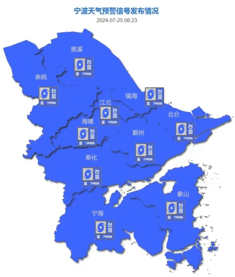 今天,宁波全域发布台风蓝色预警。我市沿海海面风力今天到明天9~11级;内陆地区7~9级。预计今天到明天阴有阵雨,雨量中到大部分暴雨,请注意防范。