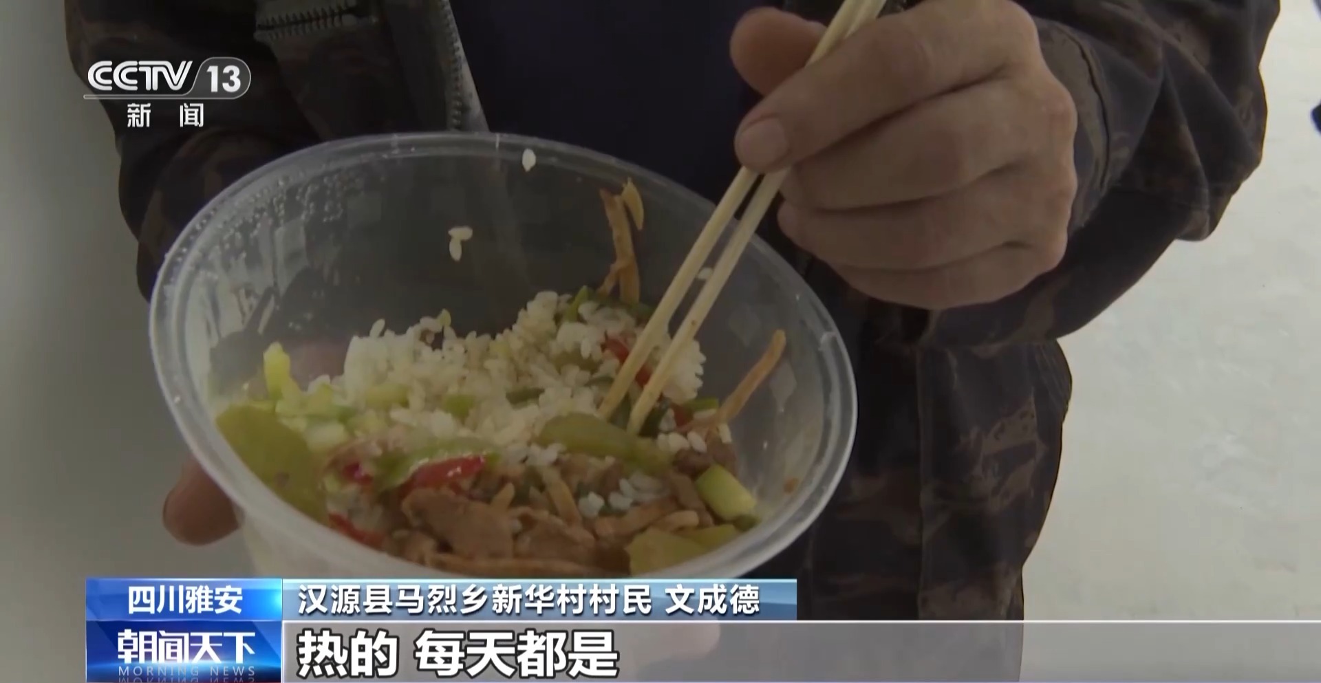 汉源县马烈乡新华村村民 文成德:有吃的,有住的,饭和菜都是热的。