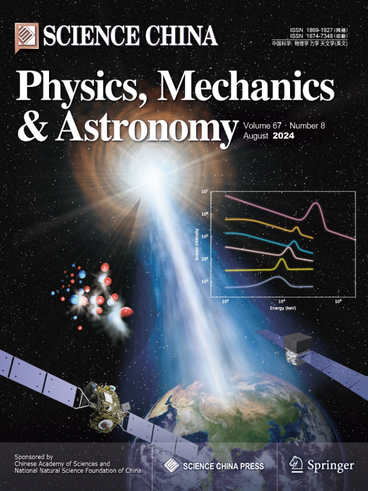 △本项研究成果以封面论文形式发表在《中国科学:物理学 力学 天文学》(英文版)。图片展现了极目空间望远镜和费米卫星观测迄今最亮伽马暴,并联合发现随时间演化的伽马射线谱线的情况。