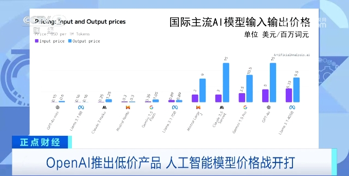 OpenAI自去年已多次降价,新产品GPT-4o mini的收费相比两年前的GPT-3降低了99%。