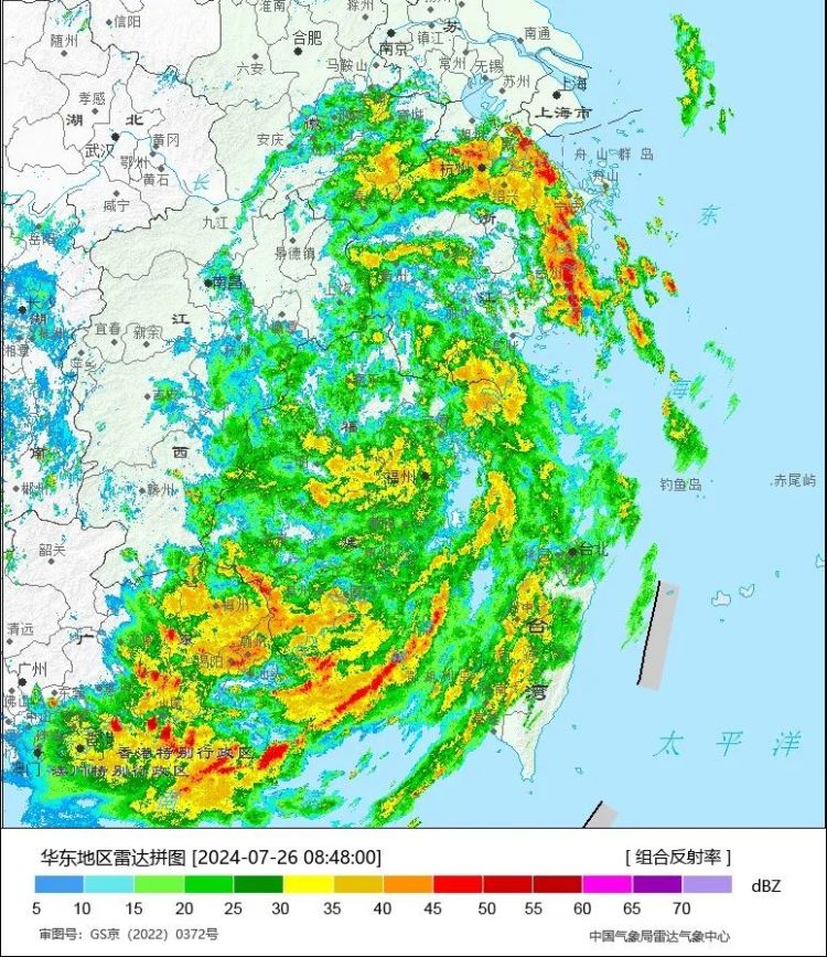 “格美”今天(26日)早晨5点钟其中心位于我国福建省福州市永泰县境内。预计将以每小时20公里左右的速度向北偏西方向移动,并将于今天傍晚至夜间由福建移入江西,而后继续北上,强度逐渐减弱。
