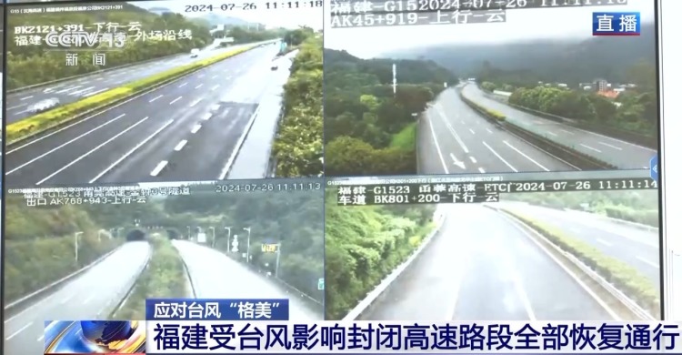 总台央视记者 陈晰:受台风“格美”影响,福建之前封闭了路段33个,涉及17条高速,现在所有高速的路段都已经恢复了通行。此外,浙江没有因为台风和降雨封闭的路段。