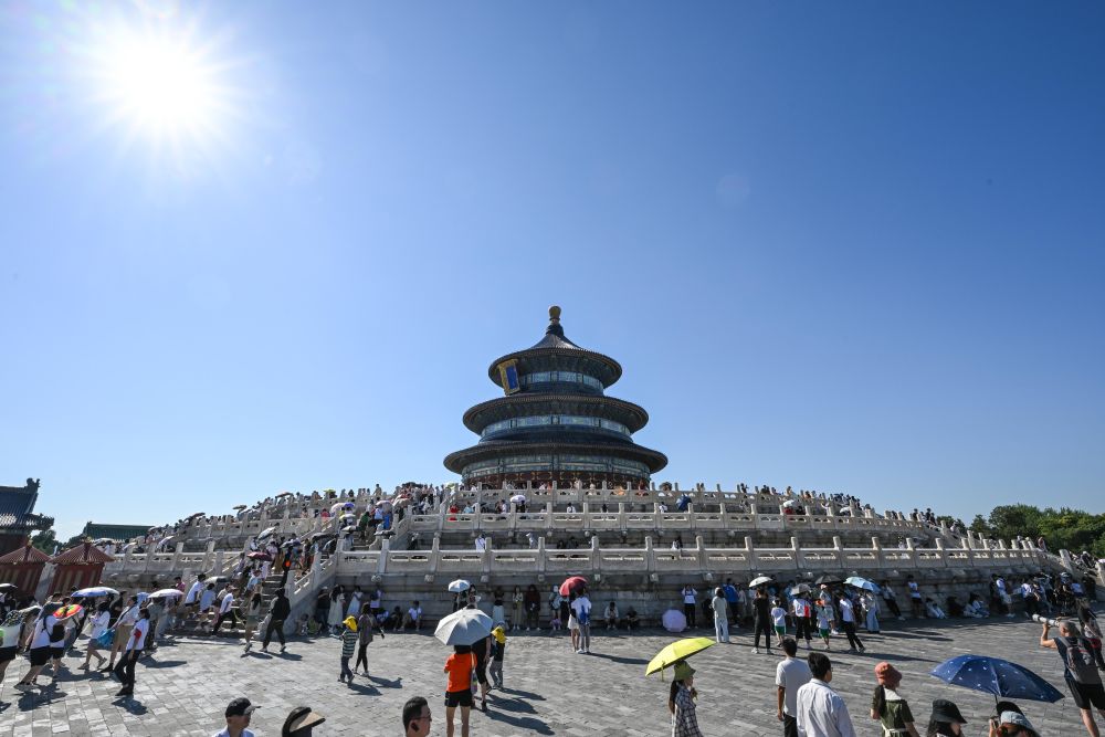 晨光熹微,游人守候在天安门广场周围,等待国旗升起的庄严时刻;日落时分,人们走进景山公园,领略夕阳映照下的古都风采;路过鼓楼,不少行人停下脚步,与“网红”景点合影留念……
