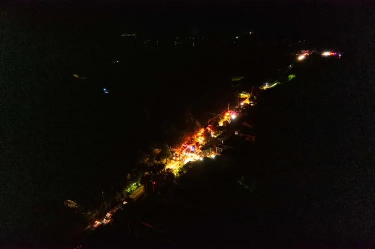 7月29日凌晨,在湖南省湘潭县易俗河镇四新堤附近拍摄的抢险车辆(无人机照片)。