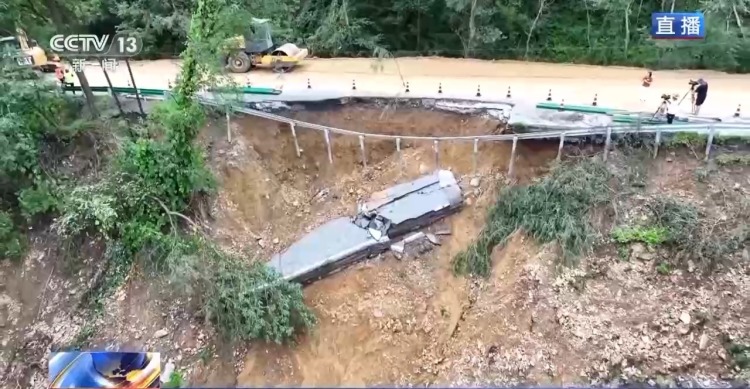 下边坡损毁坡面深度大概有40米。事发后,该路段立即采取了交通管制,相关专家现场评估,制定临时抢通方案。