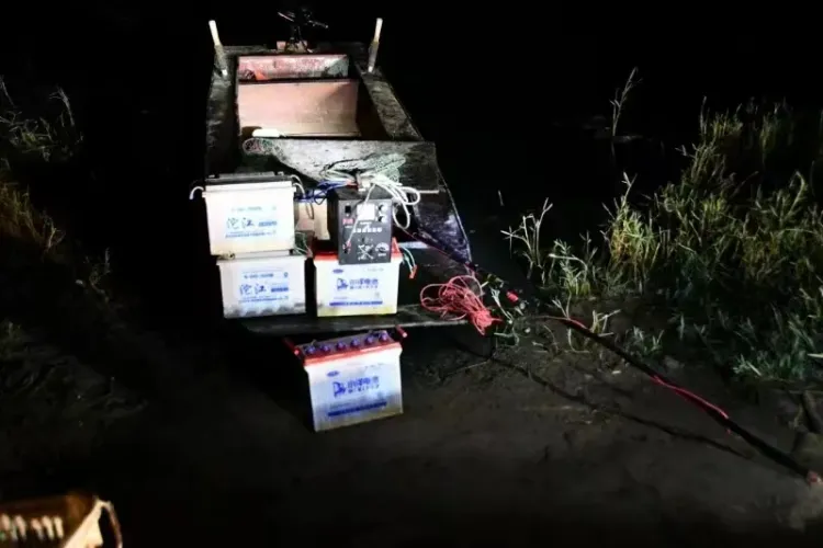 近日,警方接到群众匿名举报,称有人在乌梁素海自然保护区内非法电鱼。