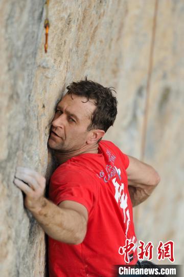 安祖正在进行攀岩运动。 (受访者供图)