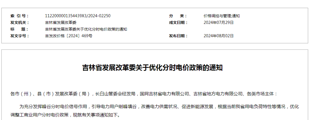 《关于优化分时电价政策的通知》
