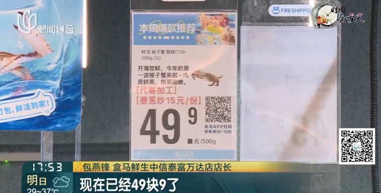 在嘉定的一家生鲜超市店长说梭子蟹刚上时大概59块9一斤,