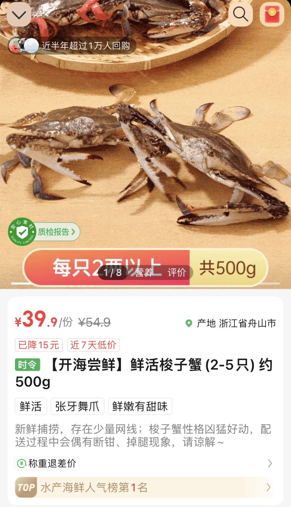 新鲜的梭子蟹也已经上架