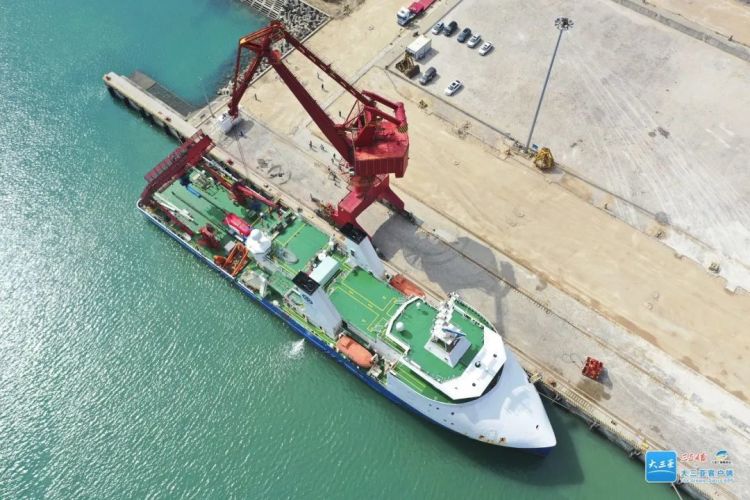 近日,北调996科考船停泊在三亚南山港公共科考码头,准备新一轮的海洋科考任务。7月实现科考船试靠泊的三亚南山港公共科考码头,是我国首个公共科考码头,可以满足国内最大主流科考船的靠泊需求。