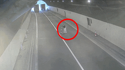 两人看见隧道检修道上放置了一些反光锥桶,于是沿抛锚车所在的行车道,将锥桶一一摆放预警,为后方车辆提早发现紧急情况预留充足时间,有效避免“二次事故”的发生。