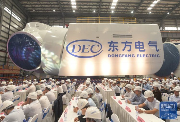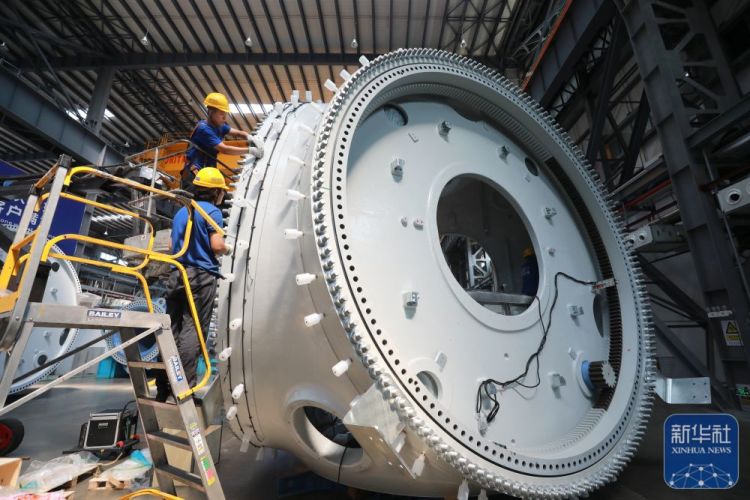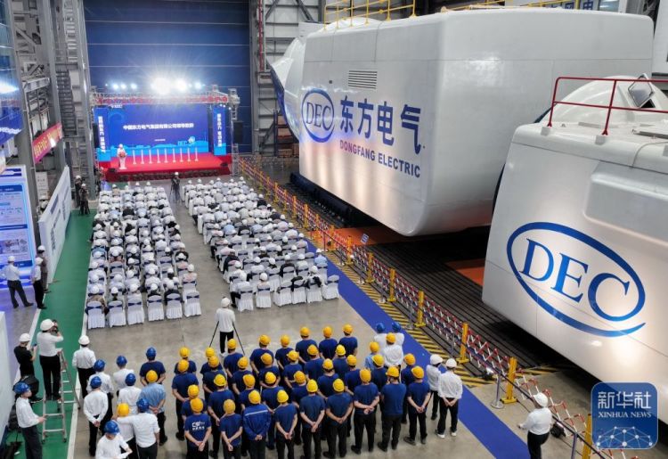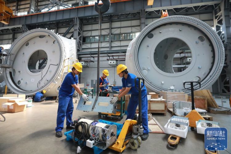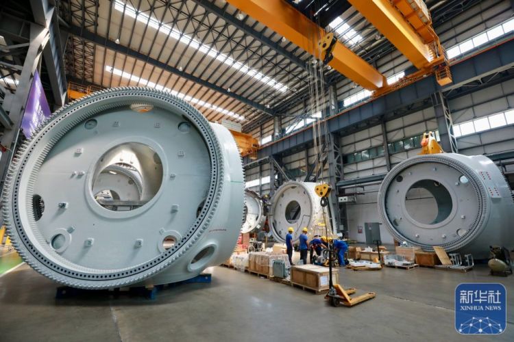 ↑2023年11月10日,18兆瓦直驱海上风电机组在福建三峡海上风电国际产业园下线。