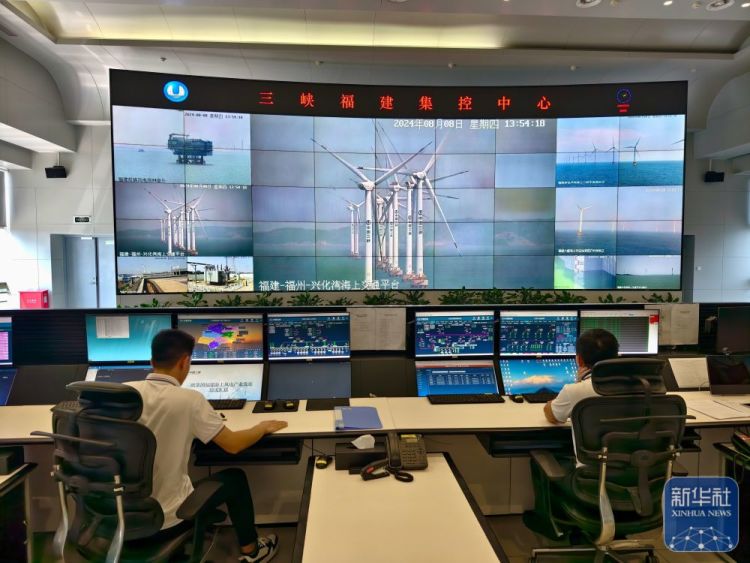 ↑8月8日,工作人员在福建三峡海上风电国际产业园三峡福建集控中心内值守。