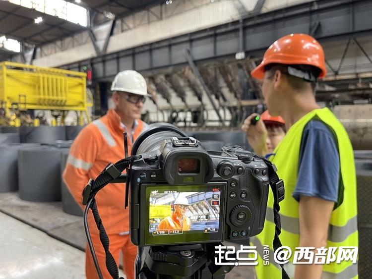 “2024丝绸之路万里行·繁荣之路”大型跨国全媒体采访团记者正在采访。