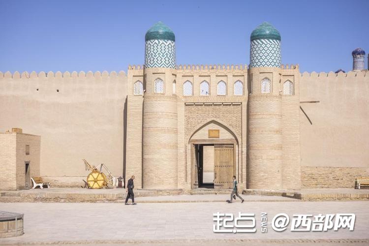 在乌兹别克斯坦希瓦古城,一座金色的纪念碑引起了“2024丝绸之路万里行·繁荣之路”大型跨国全媒体采访团记者的关注,它上面记录着古城焕新的中国印记——“中国政府援助乌兹别克斯坦花剌子模州历史文化遗迹修复项目”。