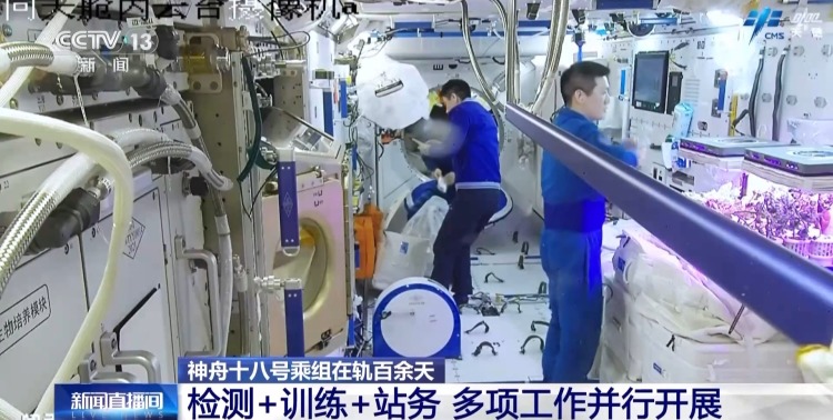 此外,神舟十八号乘组围绕空间站内环境和设备维护检测、应急救生在轨训练以及站务管理、健康维护和保障等方面,持续开展工作。