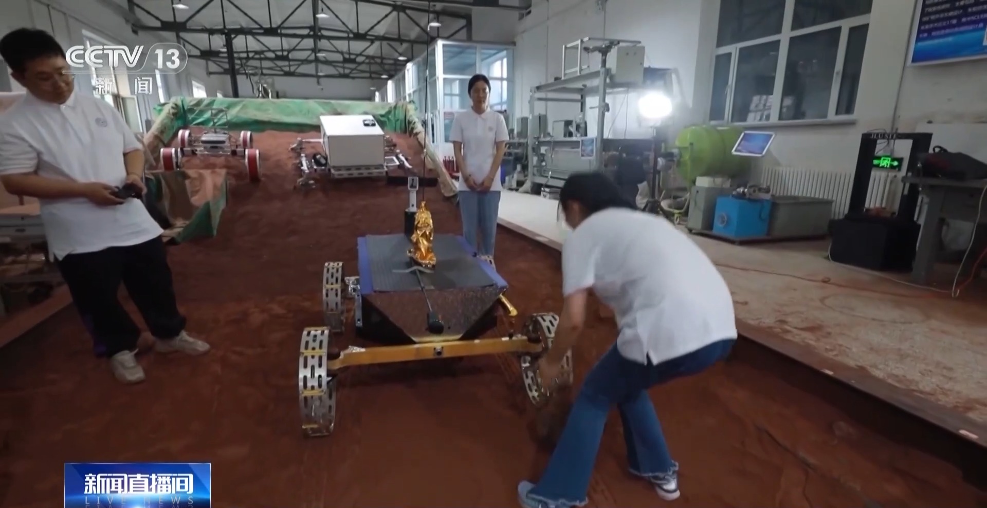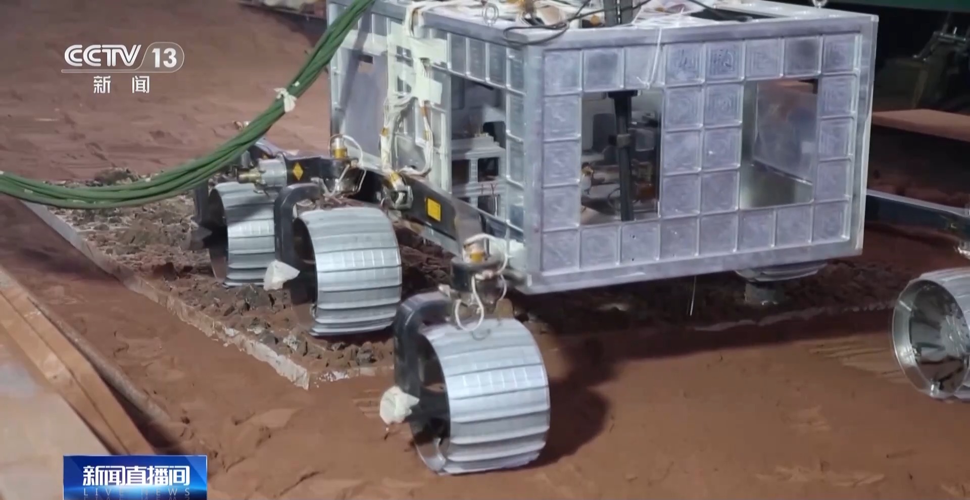 吉林大学生物与农业工程学院(工程仿生教育部重点实验室)教授 邹猛:天上的一个动作,你在地上基本上就是成千上万次实验来积累的。火星的表面更复杂,它除了有这种沙土的地面,它还有这种大量的石块分布的地面。在月面上这种情况很少,月面上主要还是以沙土地面为主。
