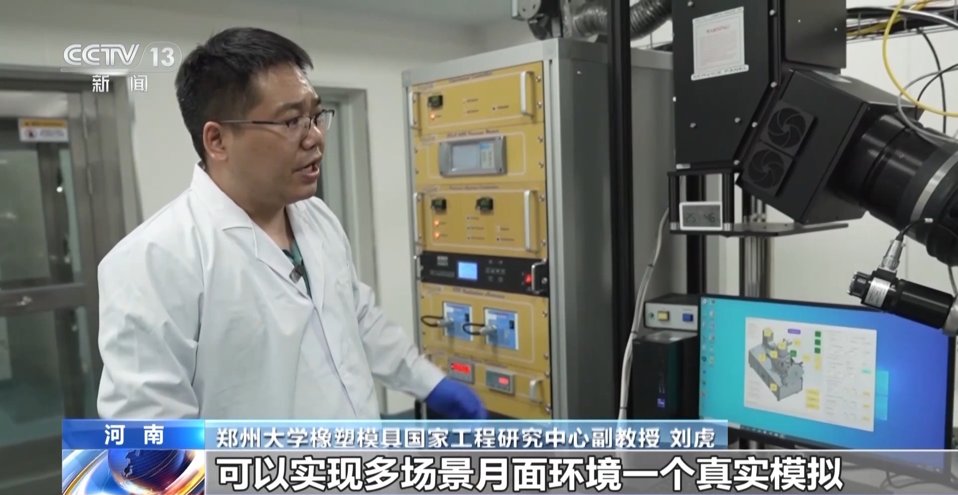 郑州大学橡塑模具国家工程研究中心副教授 刘虎:这个实验平台可以实现多场景月面环境真实模拟,包括辐射、高低温的模拟,对我们后期航天面窗材料的性能评估,提供一个非常大的实验条件的支持。