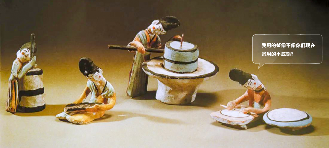 最让人惊喜的是,她们身边的炊具——鏊(ào),这个古代的烙饼神器,竟然和我们今天的平底锅很像!这说明,唐代吐鲁番人已经用它来烙饼了,是不是觉得古代生活也挺现代的?