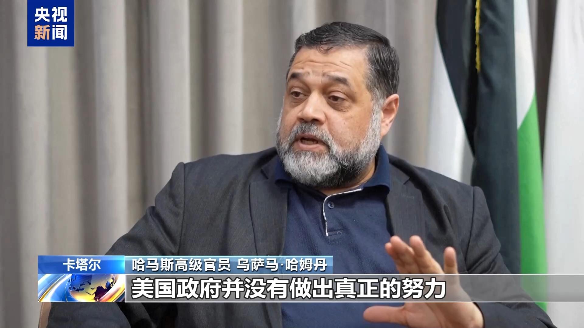 哈马斯高级官员 乌萨马·哈姆丹:美国政府并没有做出真正的努力,让以色列对它所作出的承诺负责,美国必须通过向以色列施压来实现这些保证和承诺。如果美国不这么做,巴勒斯坦人又怎么会再次信任美国的(斡旋)角色或者美国所做的保证呢?