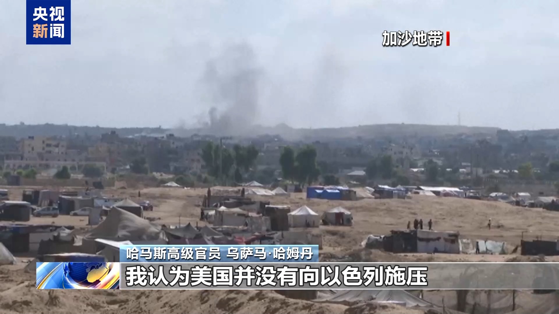 哈马斯高级官员 乌萨马·哈姆丹:美国提出了一些想法,但美国不能保证以色列会接受,美国不能给出任何保证。当我们在5月5日批准和谈提议时,美国中央情报局局长伯恩斯正在开罗,伯恩斯说以色列会接受这个提议,然后当哈马斯接受时,美国却无法说服以色列,我认为美国并没有向以色列施压。