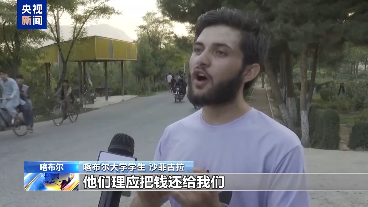 喀布尔大学学生 沙菲古拉:作为权利持有者和这个国家的公民,他们理应把钱还给我们。这是每个阿富汗公民的权利。