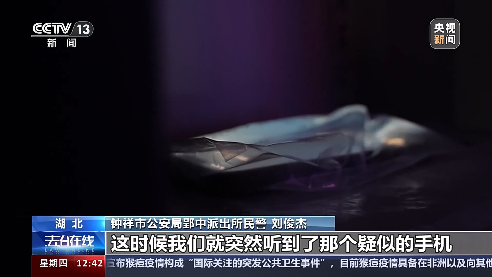 钟祥市公安局郢中派出所民警 刘俊杰:这时候我们就突然听到了那个是疑似的手机,就是手机的铃声响起,然后我们拿起来,发现正是我拨打了这个电话,我们当时也很纳闷,既然有人报警,为什么报警的手机遗留在这?