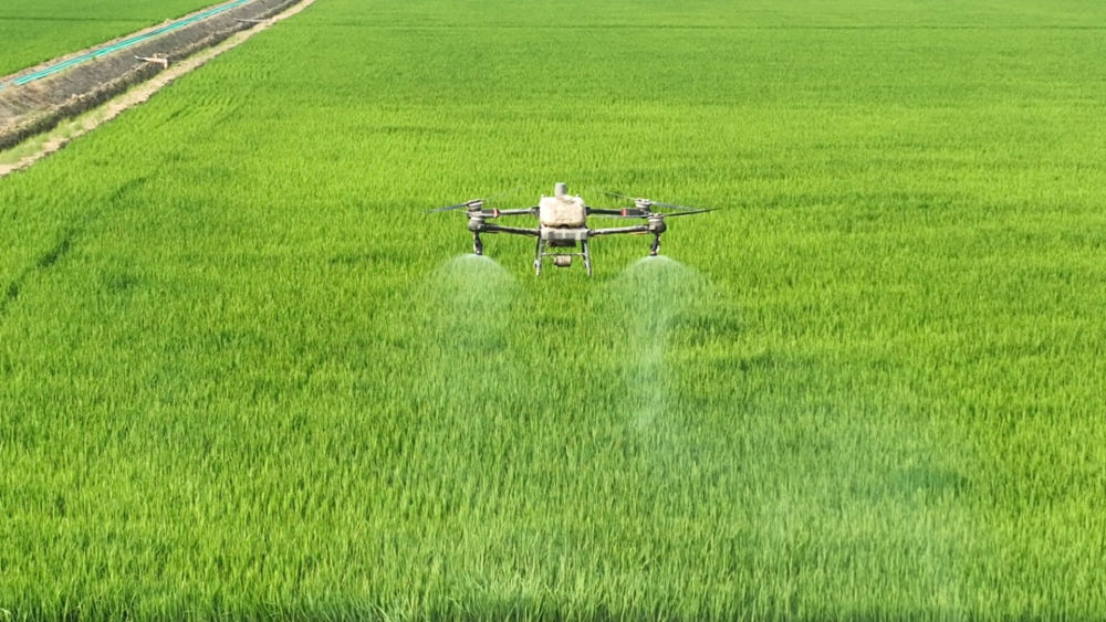 在北大荒集团军川农场有限公司,无人机正在喷药。(受访者供图)