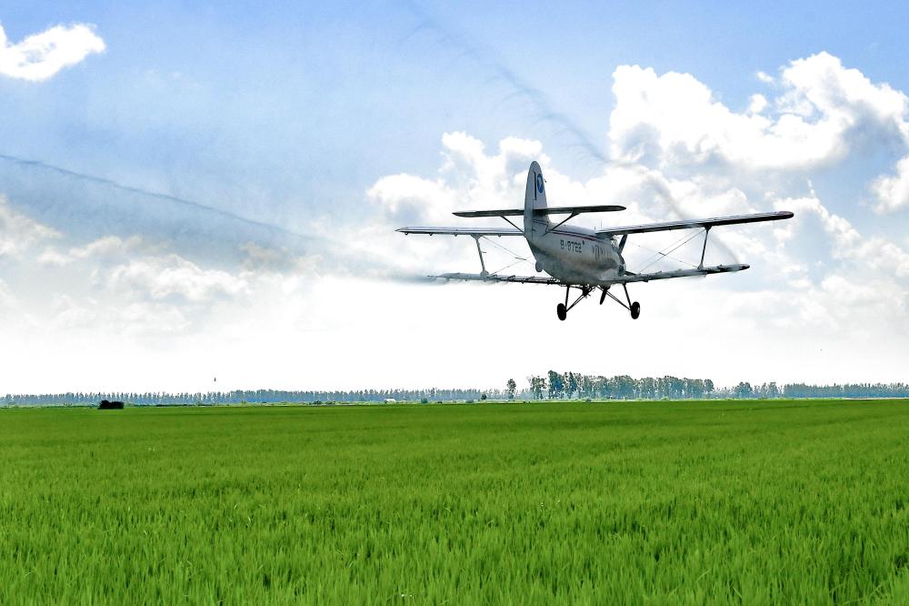 近日,黑龙江垦区北大荒集团各农业生产单位陆续开展农田航化作业,通过防病、追肥、灭虫统防统治,保障作物健康生长。新华社发(黄永兴摄)