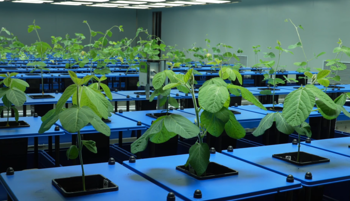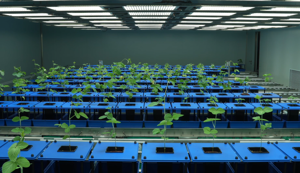 种子是农业的“芯片”。在位于吉林的中国科学院东北地理与农业生态研究所的实验室,高光谱摄像机对每一颗植株进行扫描、拍照,通过控制光照、温度、灌溉、风速等变量,分析不同品种植株在特定生长环境下的表现。这个育种实验室被科学家称为“育种加速器”,可模拟大豆生长的特定环境,将大豆一季生长时间从近6个月缩短至五六十天。在这里科学家把分子设计育种技术和“育种加速器”应用结合起来,大大提高了育种效率。