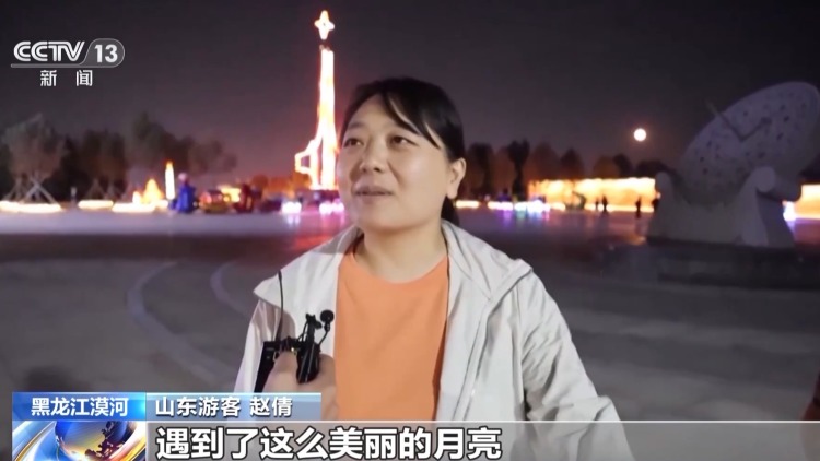 山东游客 赵倩:今天的月亮感觉像从画里走出来的,像梦境一样,遇到了这么美丽的月亮,真是太震撼了。今天也是非常幸运,看到了这么漂亮的月亮。
