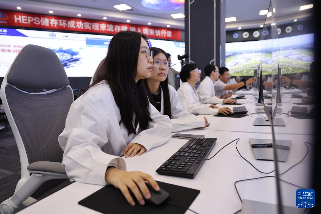 8月19日,储存环调束团队工作人员在高能同步辐射光源中央控制室监测束流状态。新华社记者 金立旺 摄