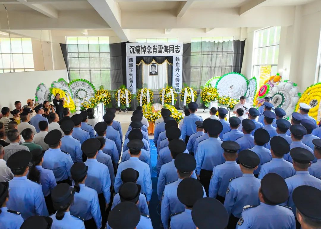 肖雪海同志的一生是拼搏的一生、奋斗的一生、奉献的一生。从警40年来,他兢兢业业,任劳任怨,长期战斗在打击违法犯罪、服务群众第一线,为公安事业尽心竭力,守护了辖区的平安;他扎根基层、心系群众,积极为群众做好事、办实事、解难事,是脱贫攻坚和乡村振兴的忠实践行者;他以警心践行初心、以生命诠释使命,将全部精力和满腔热血奉献给了公安事业,直至生命的最后一刻……